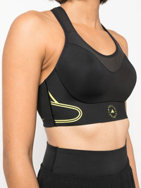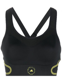 TruePace running sports bra Highlights - Black - Yellow - Recycled polyester blend - Stretch-design - Logo print to the front - Logo print to the rear - Scoop neck - Cut-out detailing - Adjustable spaghetti straps - Rear criss-cross straps - Rear hook and eye fastening - Elasticated underband Imported Composition Recycled Polyester 79%, Elastane 21% SIZE & FIT Model measurements Height 5 ft 10 in(1.79 m) Bust/Chest 31.49 in(80 cm) Hips 35.03 in(89 cm) Waist 24.4 in(62 cm) Measurement LENGTH 4.52 in(11.5 cm) BUST 34.64 in(88 cm) Washing instructions Machine Wash