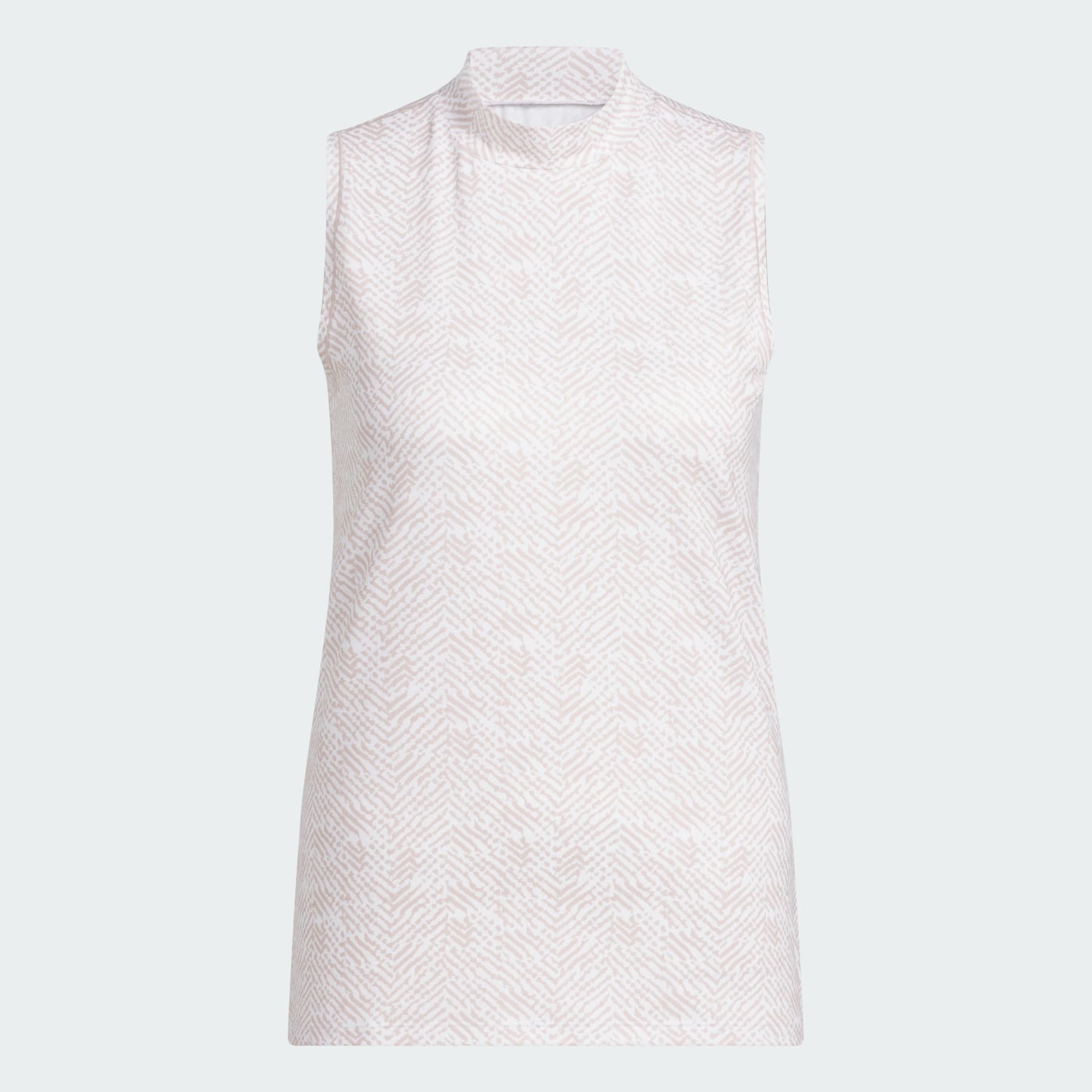 A mock-neck golf polo for a modern course look. Feel good. Play your best. This adidas golf polo offers full mobility with its sleeveless, stretchy build. The subtle print and mock-neck style give it a modern look that's right at home on any course. Details - Regular fit - Mock neck - 89% polyester (recycled), 11% elastane - Allover print - Imported - Product code: JE9915 - Product color: Wonder Taupe