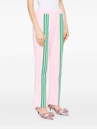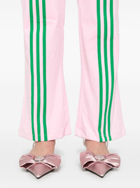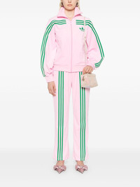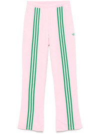 velour track pants Highlights - Light pink/grass green - Recycled polyester blend - Velour - Elasticated waistband with internal drawstring - Two side zip-fastening pockets - Signature 3-stripes logo - Signature trefoil logo detail - Raised seam detail to the rear - Flared Imported Composition Recycled Polyester 92%, Spandex/Elastane 8% SIZE & FIT Model measurements Height 5 ft 9 in(1.76 m) Bust/Chest 34.25 in(87 cm) Hips 35.82 in(91 cm) Waist 23.62 in(60 cm) FittingInformation Designed with a flared hem, these trousers allow for a close fit at the waist with a slim fit over the leg and widening towards the hem Adjust this piece’s waistband to your preference using the drawstring Made from a midweight stretch fabric, this piece offers elasticity and flexibility when worn