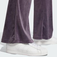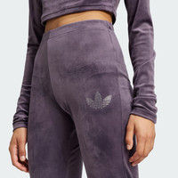 Velvet flared pants with rhinestones, made in part with recycled materials. Crafted from lush velvet and embellished with a rhinestone Trefoil, these slim-fitting adidas pants give you a touch of glam. With a flared cut from the archive, this design remixes our icons into a look meant for the daring. A little bit of stretch combined with the slim fit flatters your shape. This product is made with at least 70% recycled materials. By reusing materials that have already been created, we help to reduce waste and our reliance on finite resources and reduce the footprint of the products we make. Details - Slim fit - Elastic waist - 94% polyester (recycled), 6% elastane - Flared legs - Imported - Product code: IW5682 - Product color: Aurora Black