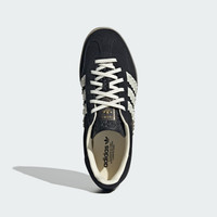 Classic Gazelle Indoor shoes with ruffled 3-Stripes. First released as an indoor training shoe alternative to the OG Gazelle, these adidas Gazelle Indoor shoes have made the successful crossover from sport to street. The classic silhouette is designed with a soft suede upper that gives them a traditional look and feel. A signature T-toe overlay and gum rubber outsole stay true to the original design. To complete the look, ruffled 3-Stripes adds a final touch of luxe. Details - Regular fit - Lace closure - Textile and leather upper - Synthetic lining - Synthetic outsole - Imported - Product code: JS1412 - Product color: Core Black / Cream White / Gum