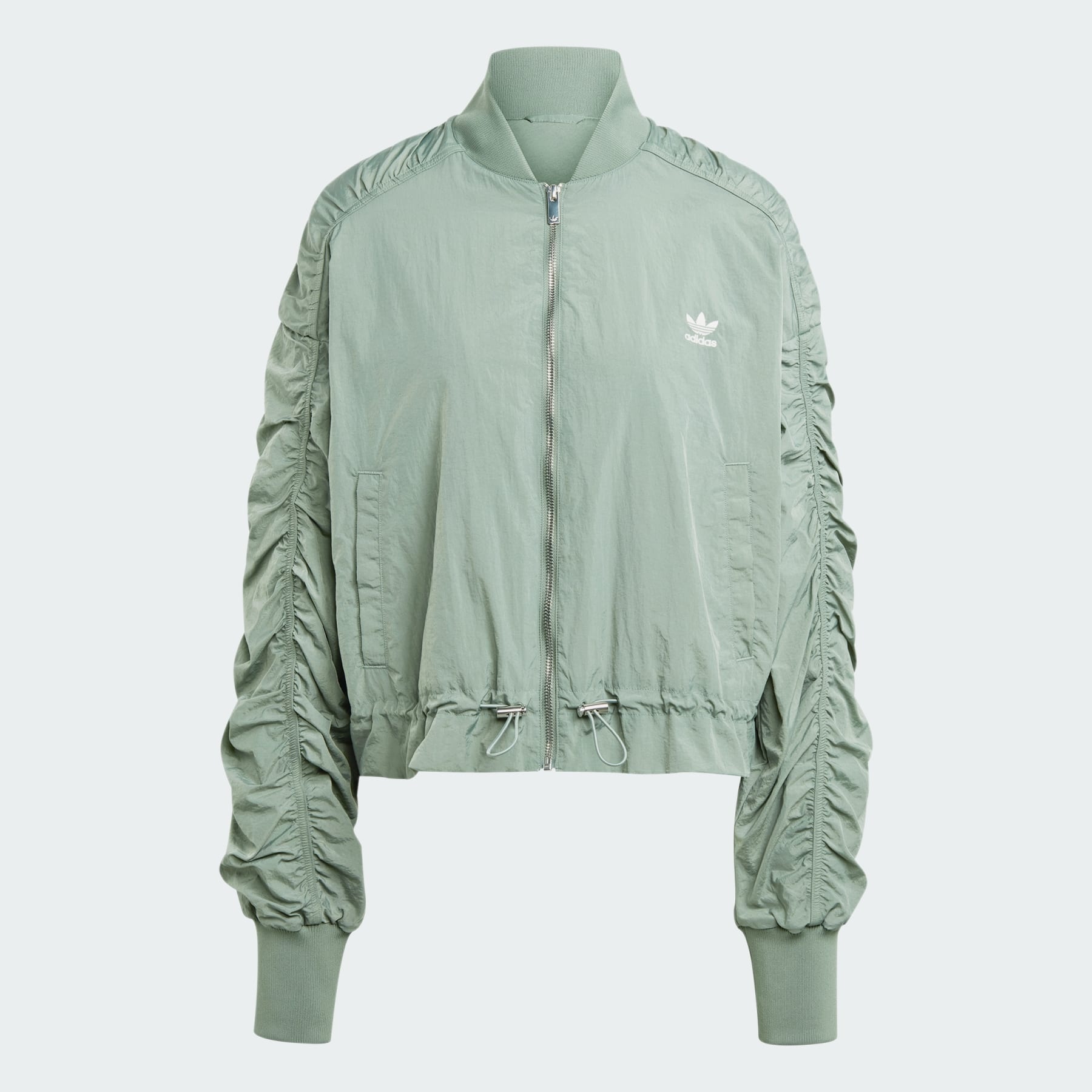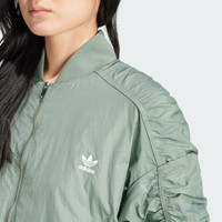 Classic bomber jacket style in a lightweight build. This adidas bomber jacket has a loose silhouette and an easygoing vibe, perfect for downtime or an evening out. Ribbed cuffs lend a casual touch while sealing out drafts. Its plain weave build is inspired by iconic athletic style. Slip into comfort and an enduring sense of cool. Details - Loose fit - Full zip with ribbed bomber collar - 100% nylon (recycled) - Snap-button front pockets - Ribbed cuffs - Bungee-adjustable hem - Imported - Product code: IY3421 - Product color: Trace Green