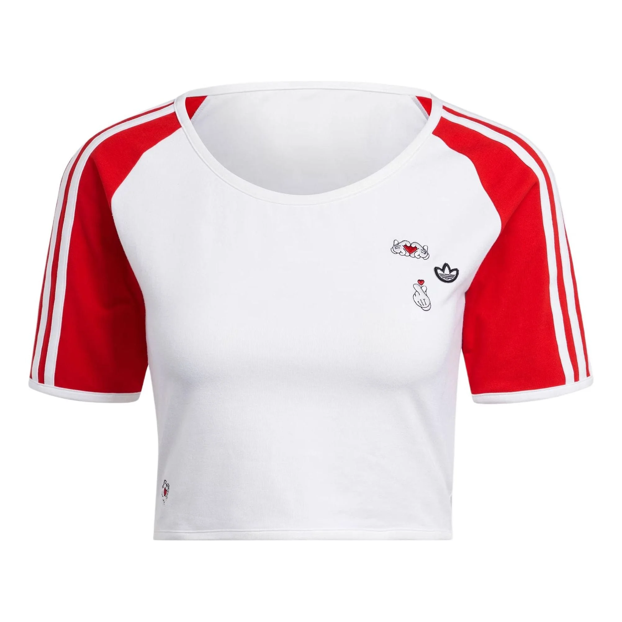 (WMNS) adidas Originals x Mickey Mouse 3-Stripes Icon For Her Baby T-Shirt 'White Red' IY2268