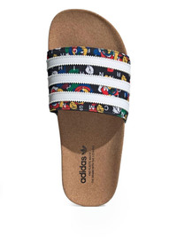 Rich Mnisi Adilette "Core Black /Cloud White/Supplier Colour" slides Highlights - Black - Single toe strap - Floral print - Signature 3-stripes logo - Almond open toe - Branded insole - Rubber sole - These styles are supplied by a premium and authenticated sneaker marketplace. stocking only the most sought-after footwear, they source and curate some of the most hard to find sneakers from around the world. Imported Composition Sole: Rubber 100% Outer: Canvas 100% Lining: Fabric 100%