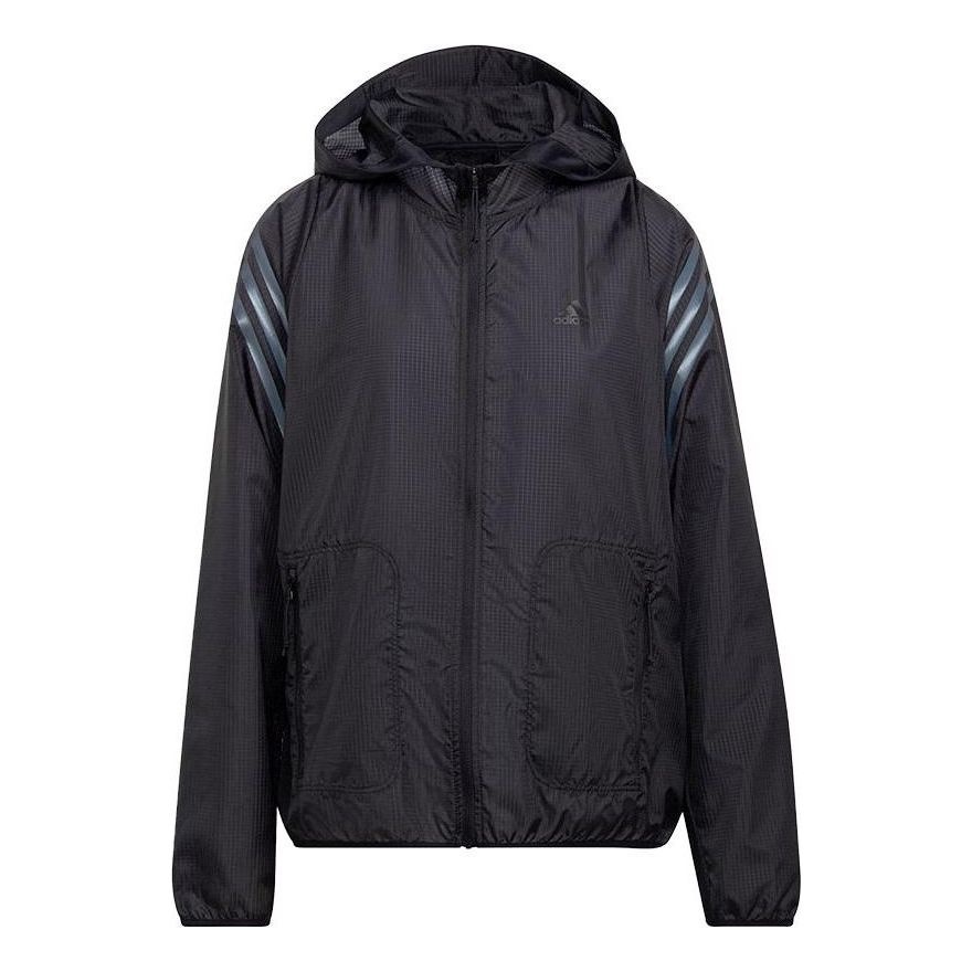 (WMNS) adidas Run Icons 3-Stripes Hooded Running Windbreaker 'Black' HC7976