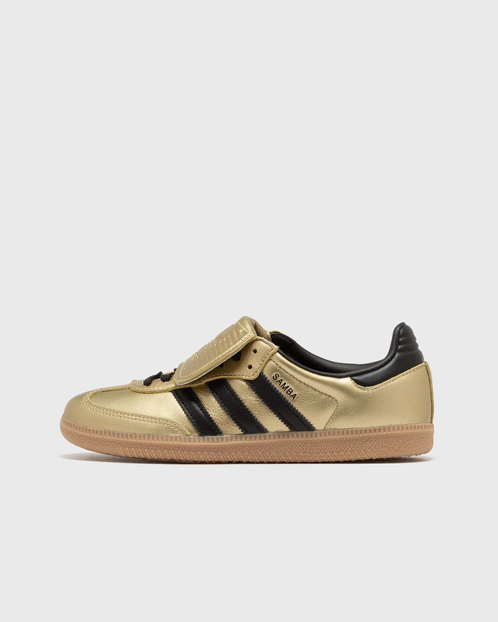The iconic adidas Samba is back. This version pays homage to the shoe's soccer roots with a classic fold-over tongue. Signature details include a T-toe and rubber outsole, while the metallic leather upper provides a unique look. - Lace-up closure - Metallic leather upper - Textile and synthetic lining - Rubber outsole Article number: JH5708 Gender: men,women Color: GOLDMT/CBLACK/GUM3 Material: Upper material: 100% Synthetic/Textile