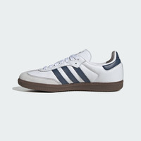 Sport-inspired shoes with a retro look, modern comfort and a rich past. Long before the adidas Samba shoes took to the streets, they left their mark on the indoor football pitch. Their smooth leather upper, nubuck toe cap and reinforced rubber sole were designed with agility and control in mind. Though times have changed, their essence remains. Today, they carry on the legacy as an iconic street style, ready for whatever your day brings. Molded into their design is decades of history, keeping the spirit of the Trefoil alive. Details - Regular fit - Lace closure - Leather upper and nubuck toe cap - Textile lining - Rubber outsole - Imported - Product code: JH5688 - Product color: Cloud White / Preloved Ink / Dash Grey