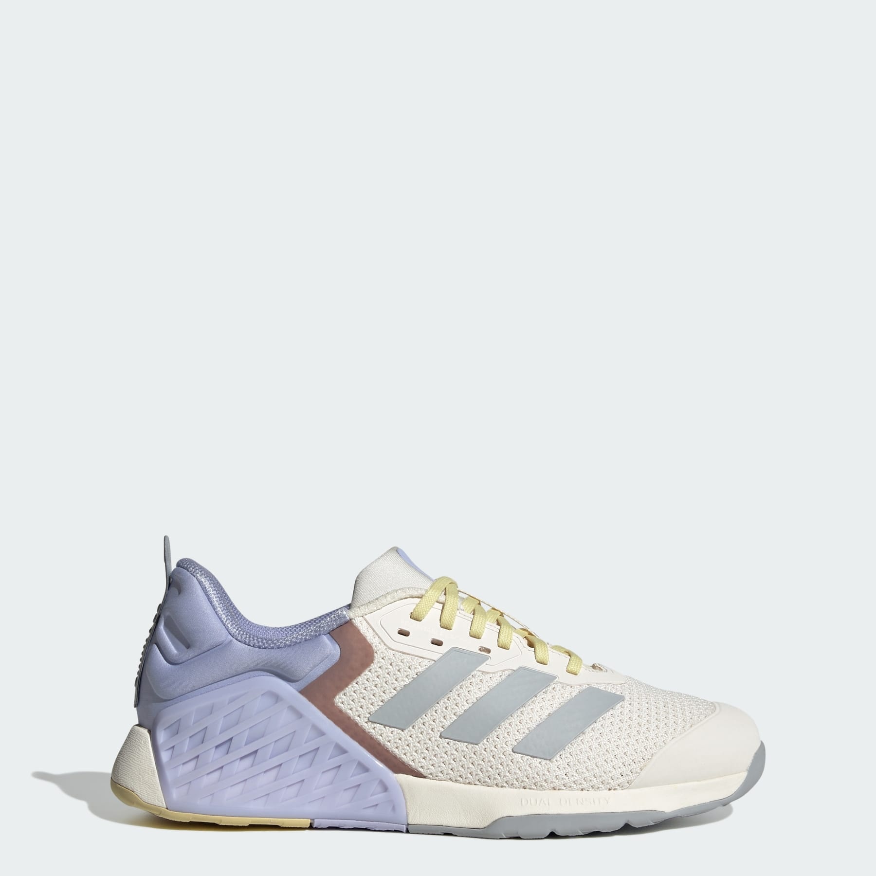Dropset 3 training shoes made in part with recycled materials. Whether the workout calls for power or endurance, these adidas shoes offer the support you need for strength training. A dual-density midsole keeps feet stable through heavy lifts, while remaining flexible enough for cardio. HEAT.RDY and a breathable upper work overtime to beat the heat, so you can focus on the reps. A wide fit accommodates swelling feet, and an Adiwear outsole grips the floor to drive performance. This product features at least 20% recycled materials. By reusing materials that have already been created, we help to reduce waste and our reliance on finite resources and reduce the footprint of the products we make. Details - Wide fit - Adjustable lacing system - Textile upper with TPU sidewall support - Geofit Sensepods follow the natural form and function of the heel allowing for instant comfort at step-in and lock-down effect - HEAT.RDY - Dual-density midsole - 6 mm heel drop - Adiwear 6 outsole with Traxion heel - Contains at least 20% recycled content - Imported - Product code: JI3903 - Product color: Chalk White / Halo Silver / Violet Tone