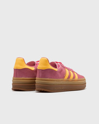 The adidas Gazelle Bold gives the iconic silhouette a modern upgrade with its platform sole. Jagged 3-Stripes and a suede upper stay true to the classic's signature look. - Suede upper - Synthetic lining - Rubber platform sole Article Number: IF4498 Gender: Men, Women Color: BLIPNK/SPARK/BLIPNK Material: Full: 100% Leather/Textil