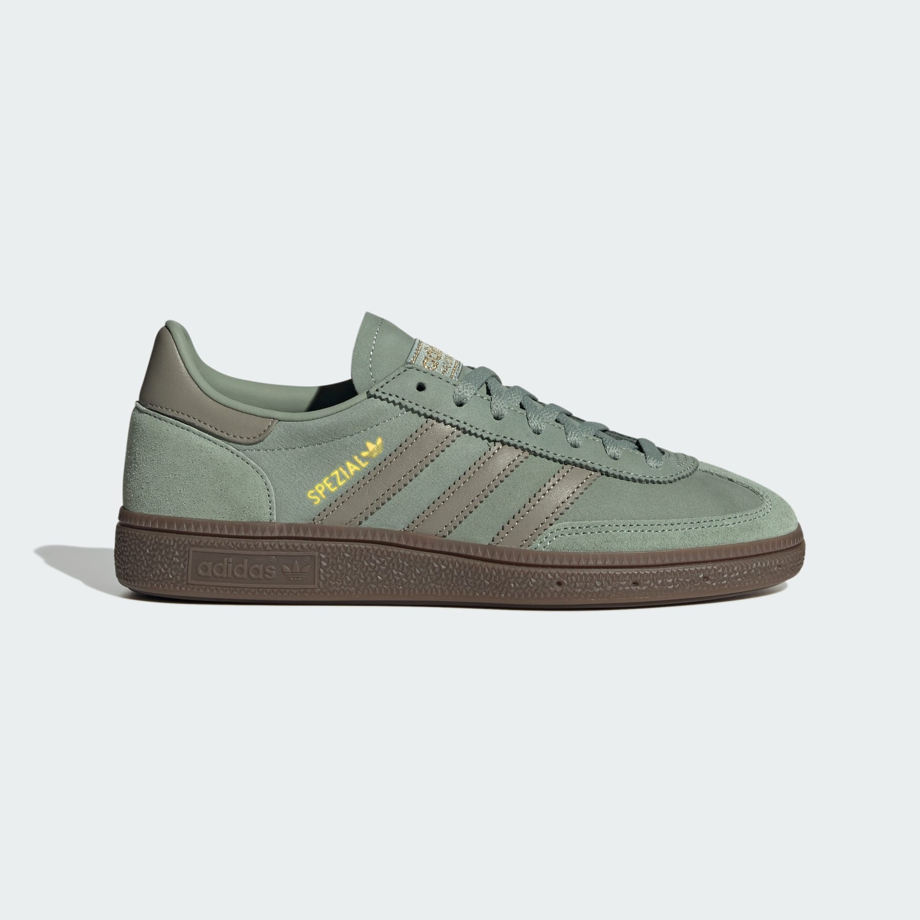 Archival adidas shoes with timeless appeal. Classic style meets modern comfort in the adidas Handball Spezial Shoes. Originally designed for elite handball players, these low top sneakers have been worn on city streets for decades. The smooth nubuck leather upper comes in understated, earthy tones that pair well with any outfit. Inside, a leather lining and sockliner cradle add extra comfort. Details - Regular fit - Lace closure - Leather upper - Leather lining - Rubber outsole - Imported - Product code: JI2645 - Product color: Silver Green / Silver Pebble / Gum