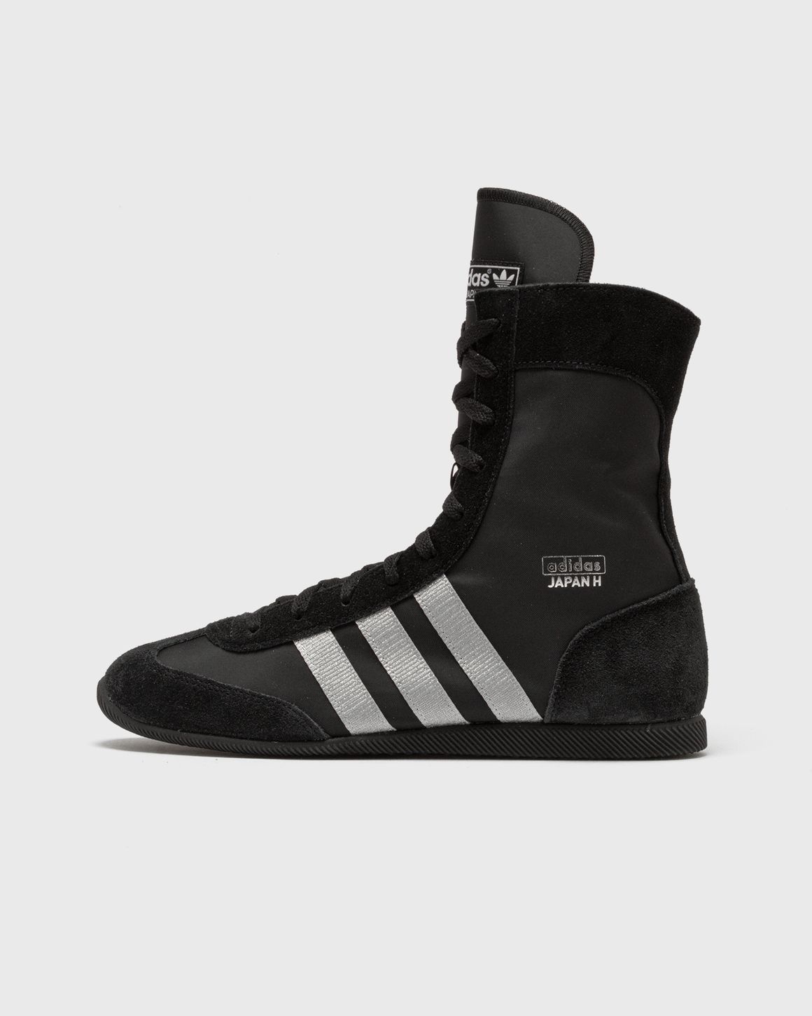 Inspired by wrestling boots, the Japan H from adidas Originals now brings this unique silhouette to the streetwear scene. The shoe is characterized by a slim, mid-cut silhouette and a mix of flexible nylon and robust suede. - Lace-up closure - Nylon upper with suede overlays - Textile lining - Rubber outsole Article Number: JR8118 Gender: Men, Women Color: CBLACK/SILVMT/FTWWHT Material: Upper material: 100% Synthetic/Textile