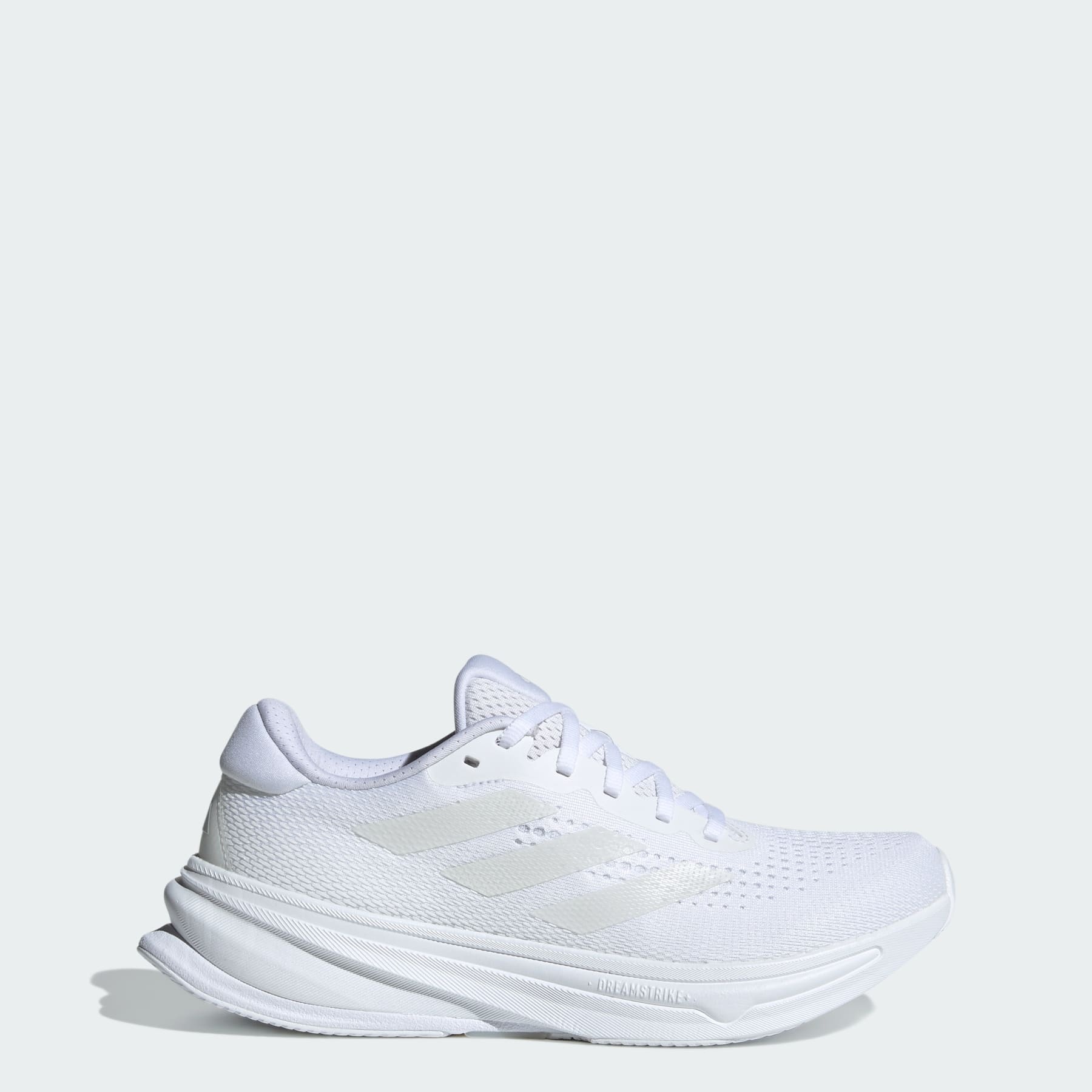 BEST RUNNING SHOE FOR EVERY LEVEL Awarded Women's Health's best running shoe for every level, we've designed the Supernova Rise to keep you comfy mile after mile. With Dreamstrike+ technology, the midsole is cushioned with re-engineered super foam. Our system of denser foam Support Rods provides a worry-free transition from heel to toe. Finally, Comfort Heel Fit combines cushy foam and soft textile for a more secure fit so that it feels like the shoe is giving your heel a hug. Supercomfort. Supernova. Get yours now. By choosing recycled, we are able to reuse materials that have already been created, which helps to reduce waste. Renewable materials choices will help us to remove our reliance on finite resources. Our products made with a blend of recycled and renewable materials features at least 20% total of these materials. Details - Regular fit - Lace closure - Sandwich mesh upper - Dreamstrike+ midsole - Support Rods system - Adiwear outsole - Weight: 243 g (size UK 5.5) - Midsole drop: 10 mm (heel: 34 mm / forefoot: 24 mm) - Upper dyed with more sustainable dye technology - Imported - Product code: IH7617 - Product color: Cloud White / Crystal White / Core Black