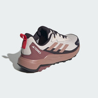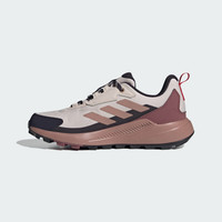 Waterproof hiking shoes made in part with a blend of recycled and renewable materials. Wander. Roam. Explore. Lace up these adidas Terrex hiking shoes and explore high and low, wet or dry. A mid-height cuff offers ankle support, and a cushioned midsole delivers lasting comfort. RAIN.RDY works with a gusseted tongue to seal out the elements, keeping your feet dry and comfortable in wet conditions. Built for durability over the long haul, they feature a Traxion outsole for a sure-footed grip. By choosing recycled, we are able to reuse materials that have already been created, which helps to reduce waste. Renewable materials choices will help us to remove our reliance on finite resources. Our products made with a blend of recycled and renewable materials feature at least 20% total of these materials. Details - Regular fit - Lace closure - Textile upper with reinforced toe cap - Gusseted tongue and RAIN.RDY - EVA midsole - Textile lining - Weight: 330 g (size UK 5.5) - Midsole drop: 9 mm (heel: 26 mm / forefoot: 17 mm) - Traxion outsole - Contains a minimum of 20% recycled and renewable content - Imported - Product code: JI1319 - Product color: Putty Mauve / Warm Clay / Pure Ruby