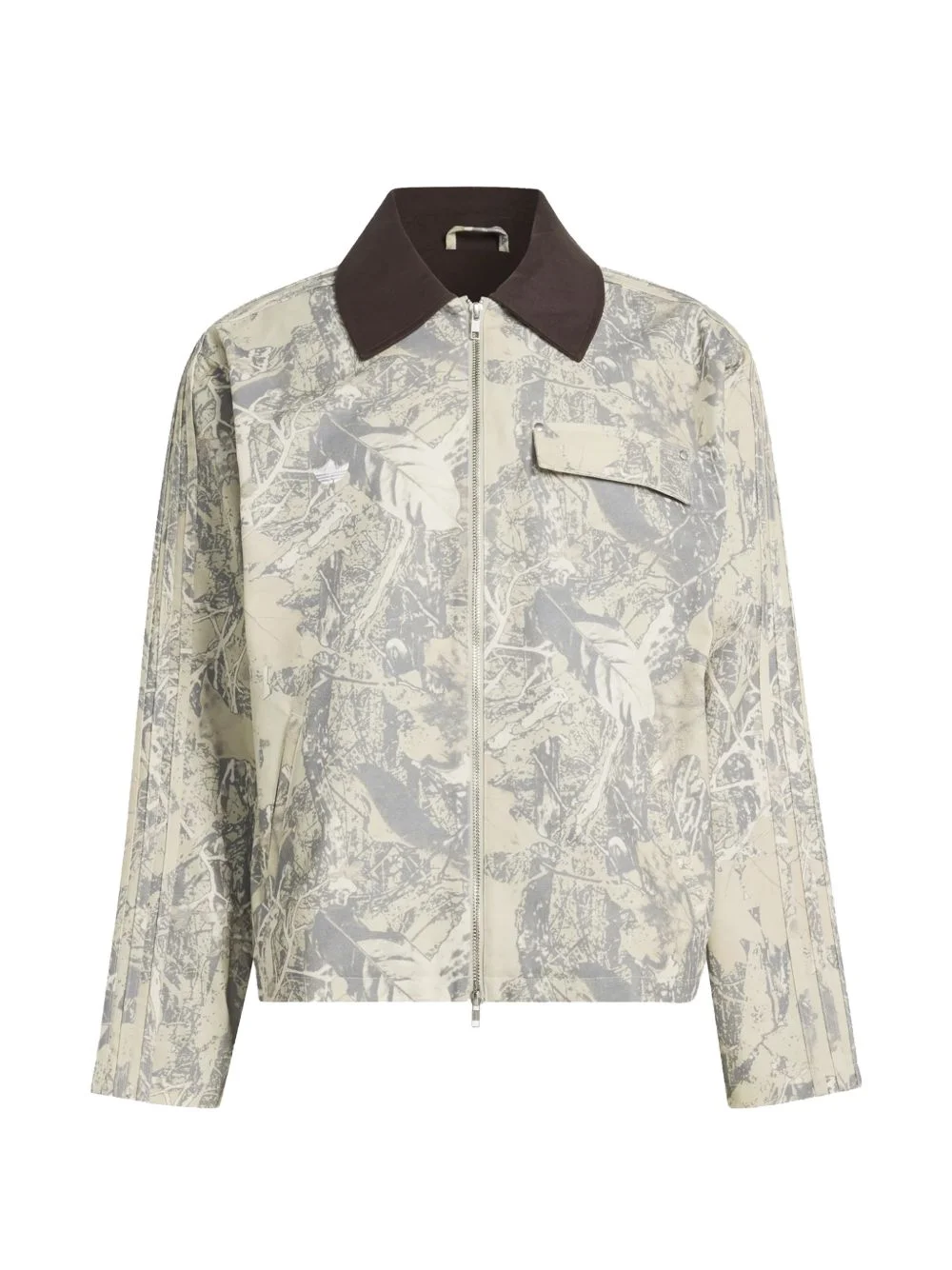 workwear jacket Highlights - Grey - Leaf print - Chest patch pocket - Zip fastening - Contrast collar - Side stripes Imported Composition Outer: Cotton 100% Lining: Polyester 100% Washing instructions Machine Wash