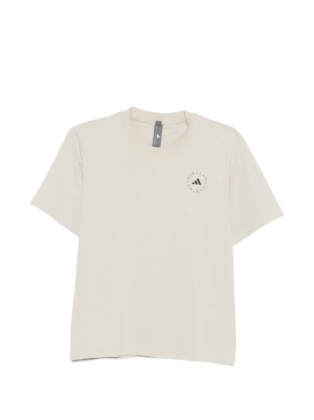 x adidas x Stella McCartney logo T-shirt Highlights - Beige - Round neck - Logo detail Imported Composition Recycled Polyester 64%, Organic Cotton 36% Washing instructions Machine Wash