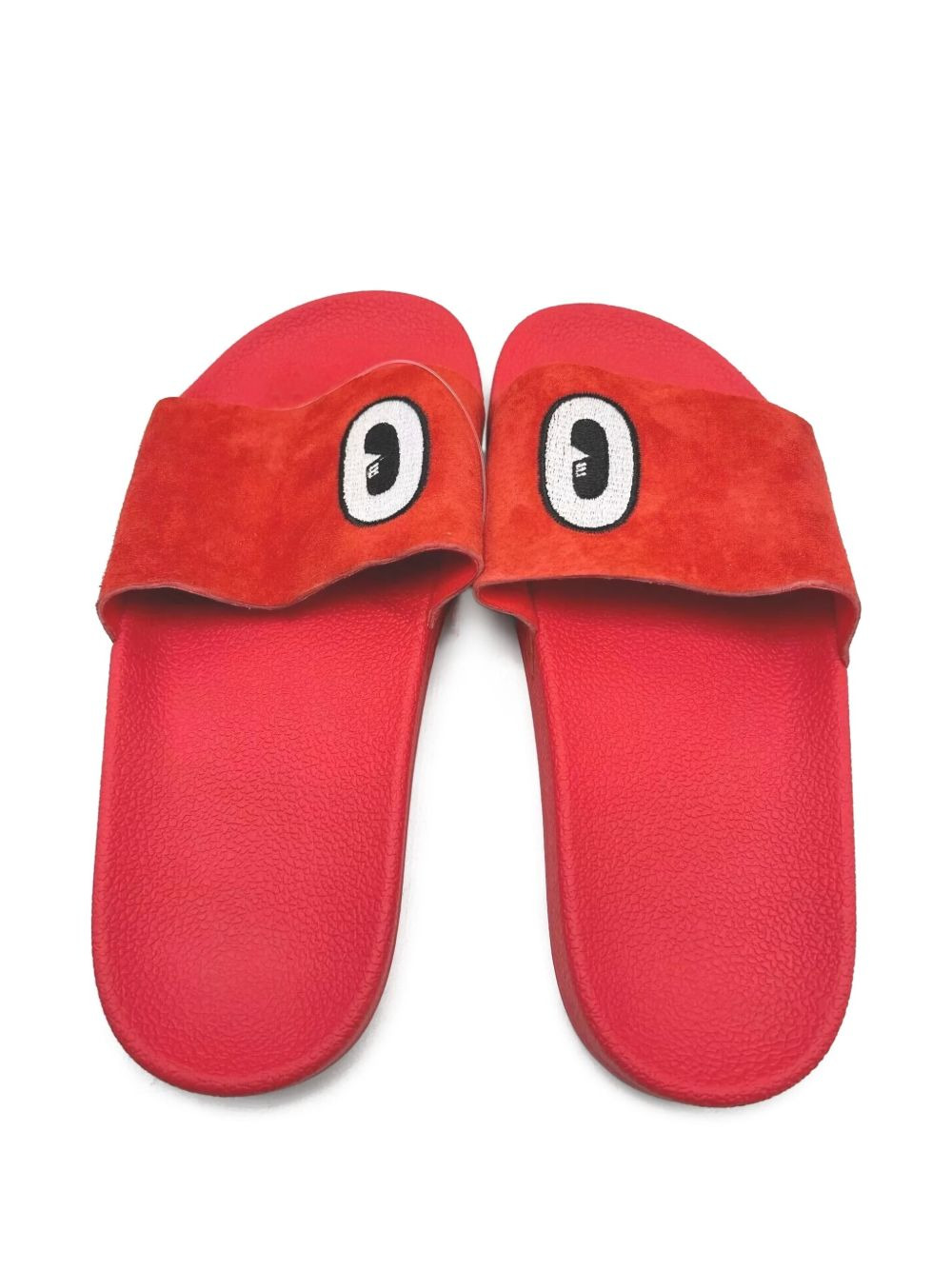 x Hattie Stewart Adilette "Red/White/Core Black" slides Highlights - Cardinal red - Single toe strap - Almond open toe - Cartoon eye motif - Branded insole - Rubber sole - These styles are supplied by a premium and authenticated sneaker marketplace. stocking only the most sought-after footwear, they source and curate some of the most hard to find sneakers from around the world. Imported Composition Outer: Calf Suede 100% Sole: Rubber 100% Lining: Polyurethane 100%