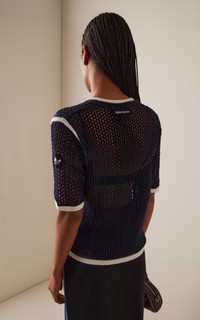 The Spring/Summer 2025 collection from adidas and Wales Bonner grounds classic athleticism with elevated sensibility and craftsmanship. Drawing on the vibrance and soulful movement felt in cities by the sea, a nautical influence is reflected in the silhouettes, materials and colours. The construction of this adidas by Wales Bonner Knit Tee elevates a classic crewneck silhouette. The light ribbed details stand out against the deep Night Navy build. PRODUCT DETAILS - Spring '25 - Slip on - Composition: 60% BCI cotton, 40% recycled polyester - Designer color: Night Navy - Machine wash - Imported SIZE & FIT - Designed for a regular fit