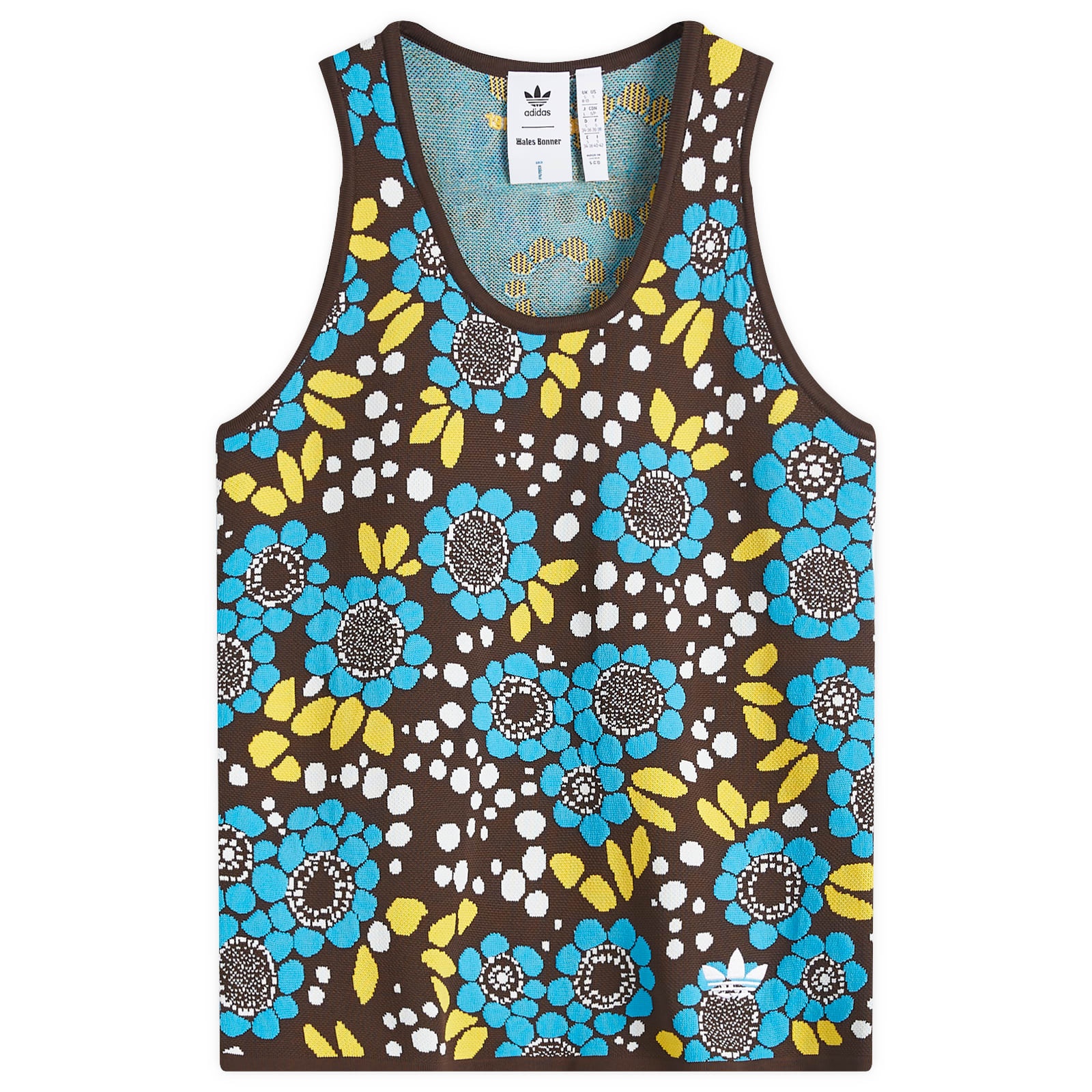 Crafted from soft knitted material, the adidas x Wales Bonner Knitted Vest is a must-have for lovers of bright pieces. Showcasing an all-over floral design, this vest has subtle embroidered branding on the front hem and back neck. - 100% Recycled Polyester - Classic Round Neck - Ribbed Trims - Machine Washable - Embroidered Branding