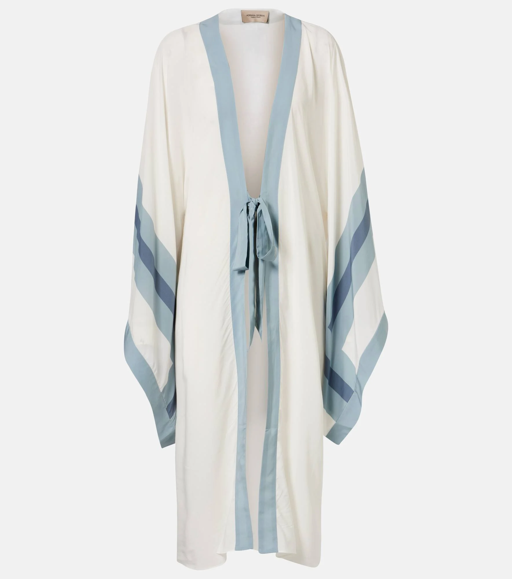 Take beach and pool days to the next level with the Bold Stripes kaftan from Adriana Degreas. The garment features a loose silhouette with a self-tie front and blue stripes along the trims. Product Details - Material: 100% viscose - Care instructions: hand wash - Made in Brazil - Color: white - Designer color name: Off/L. Blue/Navy - Item color: blue, white - Closure: belted waist - Item number: P01133074 Size & Fit - True to size - One size: perfect fit for sizes XS-XL - Designed for a loose fit - One size