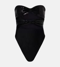 Take beach and pool days to the next level with this swimsuit from Adriana Degreas. The strapless style comes with bold cutouts at the front and all-over sequins for a shimmering finish. Product Details - Material: 96% polyester, 4% elastane - Care instructions: hand wash - Made in Brazil - Color: black - Designer color name: Black - Item color: black - Material II: 85% polyamide, 15% elastane - Filling: 60% polyurethane, 40% polyester - Lining: 91% polyamide, 9% elastane - Includes: dust bag - Item number: P01133094 Size & Fit - Fits small to size - we recommend trying one size larger - Strapless - Removable padding - High-cut leg - The model seen in the picture is 178cm-5'10", cup size B, and wearing a size S