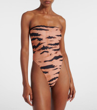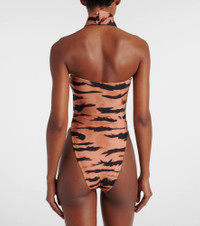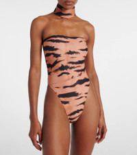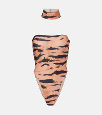 Transition from the beach to an evening soiree in this swimsuit from Adriana Degreas. Made in collaboration with Sabine Getty, this high-cut style features an all-over tiger print and is complete with a detachable choker for versatile styling. Product Details - Material: 75% polyamide, 25% elastane - Care instructions: hand wash - Made in Brazil - Color: brown - Designer color name: Beige - Item color: brown, black - Filling: 56% polyamide, 44% cotton - Lining: 84% polyamide, 16% elastane - Two-piece set - Item number: P01077116 Size & Fit - Fits small to size - we recommend trying one size larger - Petite sizing - Minimal coverage - High-cut leg - The model seen in the picture is 178cm-5'10" and wearing a size M