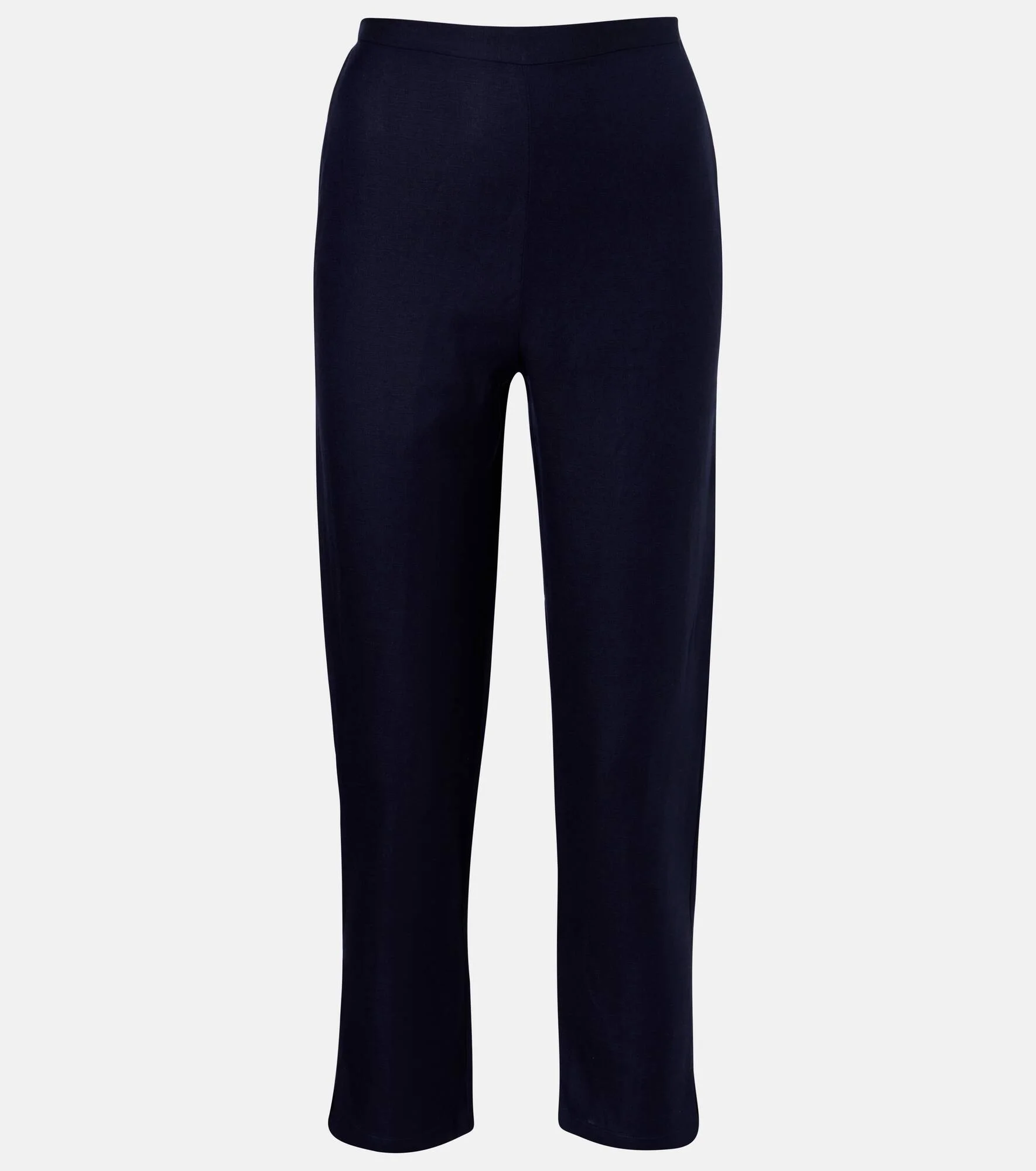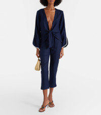 These capri pants from Adriana Degreas are crafted in Brazil, celebrating the designer's roots. The pair is made from a lightweight linen blend and features a concealed zipped side. Product Details - Material: 55% linen, 45% viscose - Care instructions: hand wash - Made in Brazil - Color: blue - Designer color name: Navy - Item color: blue - Closure: concealed zipped side - Item number: P01133083 Size & Fit - True to size - Non-stretchy fabric - Slim-leg - The model seen in the picture is 178cm-5'10" and wearing a size XS