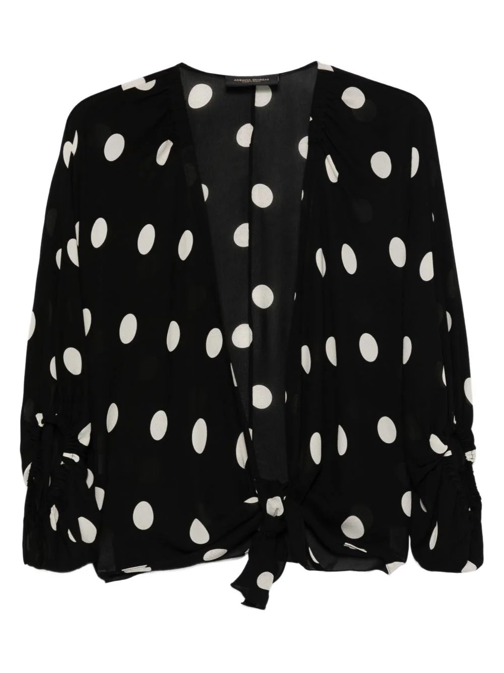 polka-dot tie-fastening blouse Highlights - Black - Polka dot pattern - Front tie - Long sleeves Imported Composition Viscose 100% Washing instructions Hand Wash