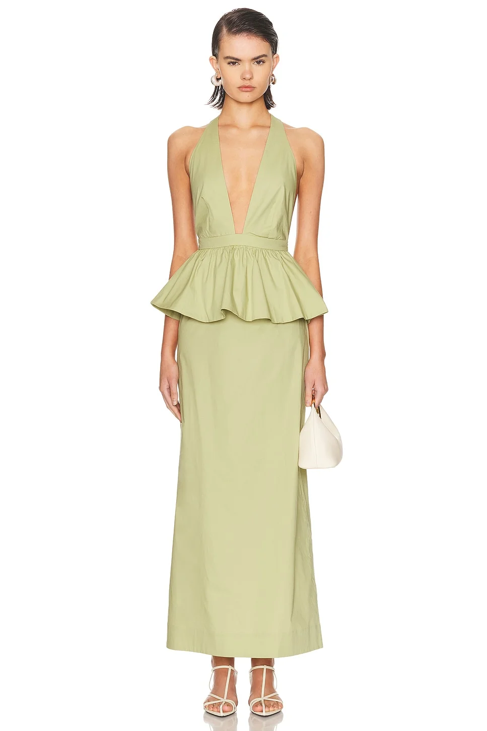 Solid Deep V Peplum Maxi Dress