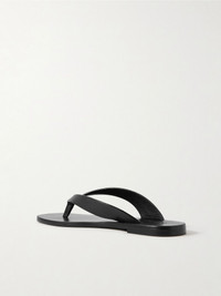 A.EMERY's minimal 'Kinto' flip flops are a timeless pair you'll return to summer after summer. Expertly crafted in India from smooth leather that'll soften with each wear, they have wide thong straps and squared-off toes. Wear yours with a billowing maxi dress and raffia hat. Small to size. See Size & Fit notes. Size & Fit - Fits small to size, take a full size larger than normal - Only available in full sizes, go up to the nearest whole size if you take a half size - Italian sizing Details & Care - Slight heel - Black leather (Cow) - Slip on