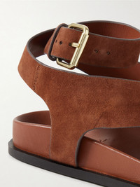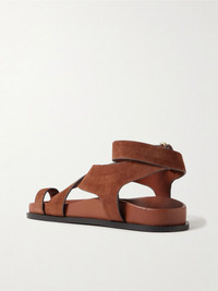 The minimalist design of A.EMERY's 'Jalen' sandals makes them the only shoes you need to pack in your vacation carry-on. They're crafted from supple suede with leather footbeds and have crossover straps with a gold-tone buckle. Size & Fit - Fits true to size, take your normal size - Only available in full sizes, go up to the nearest whole size if you take a half size - Italian sizing Details & Care - Sole measures approximately 25mm/ 1 inch - Brown suede and leather (Goat) - Buckle-fastening ankle strap - Designer color: Sienna
