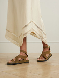 A.EMERY's 'Jalen' sandals will go with so many outfits. They're handmade from suede that's particularly soft and have wide straps. Size & Fit - Fits true to size, take your normal size - Only available in full sizes, go up to the nearest whole size if you take a half size - Italian sizing Details & Care - Slight heel - Army-green suede (Goat) - Buckle-fastening ankle straps - Designer color: Hazel Suede