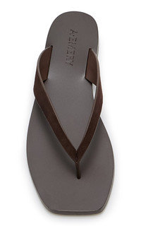 A.Emery's mission is to craft the ultimate pared-back sandal — one you'll turn to season after season. The 'Kinto' sandal is a modern flip flop that sits atop a signature square toe footbed. PRODUCT DETAILS - Slip on - Composition: suede - Designer color: Mocha - Imported