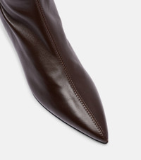 Transition effortlessly from metropolitan settings to laid-back retreats with A.Emery's handcrafted footwear. The Oscar leather knee-high boots sit atop 60mm heels and flaunt sophisticated pointed toes and a close-fitting silhouette. Product Details - Upper: leather - Lining: leather - Sole: leather insole and sole - Toe shape: pointed toe - Made in Italy - Includes: shoe box - Designer color name: Walnut - Item color: brown - Closure: zipped side - Item number: P01089936 Size & Fit - True to size - Half sizes please take the next size up - European sizes - 6cm-2.5" heel (size EU 38) - 42cm-16.5" shaft height (size EU 38) - 32cm-12.5" shaft width (size EU 38) - shaft width measured on largest part of boot