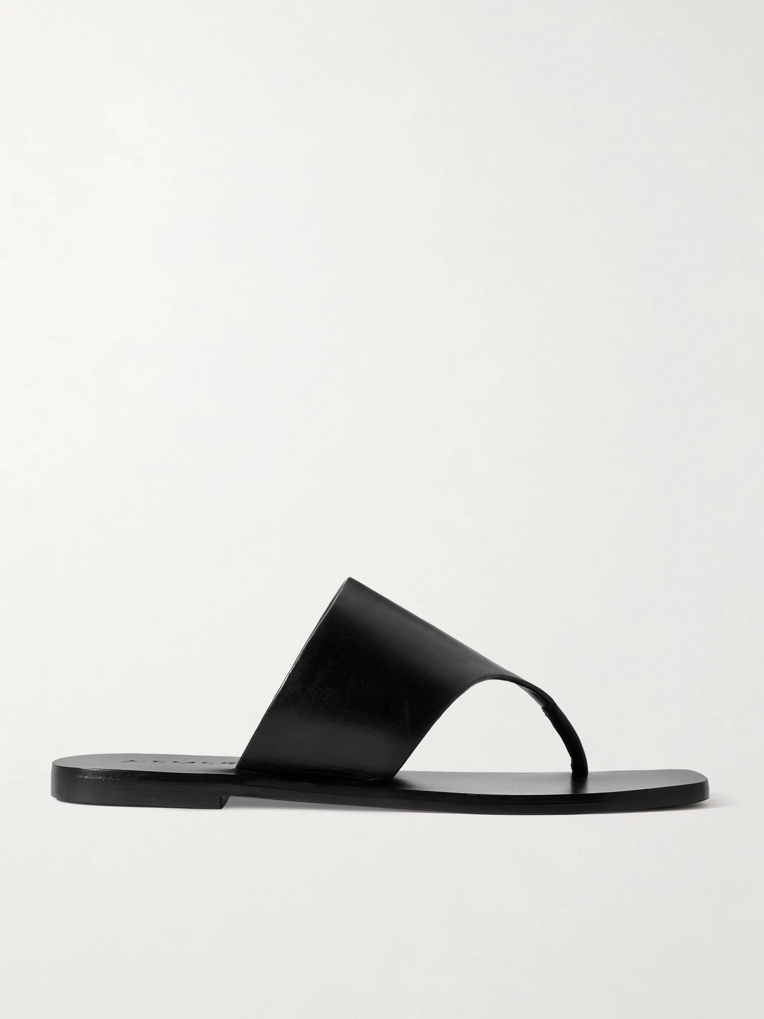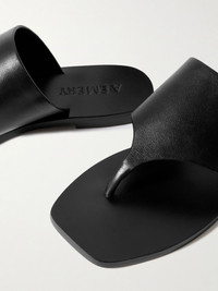 Born and raised in Australia, Anna McLaren sees sandals as a staple of every wardrobe, so each A.EMERY pair is pared-back and versatile. These 'Paton' sandals are handmade from leather with wide straps and slim tonal soles. Wear them by the coast or in the city. Size & Fit - Fits true to size, take your normal size - Italian sizing Details & Care - Slight heel - Black leather (Cow) - Slip on