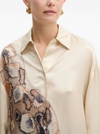 abstract-print shirt Highlights - Beige - Abstract print - Collared neckline - Long sleeves - Button fastening Imported Composition Viscose 70%, Silk 30% Washing instructions Read Manufacturer Guidelines