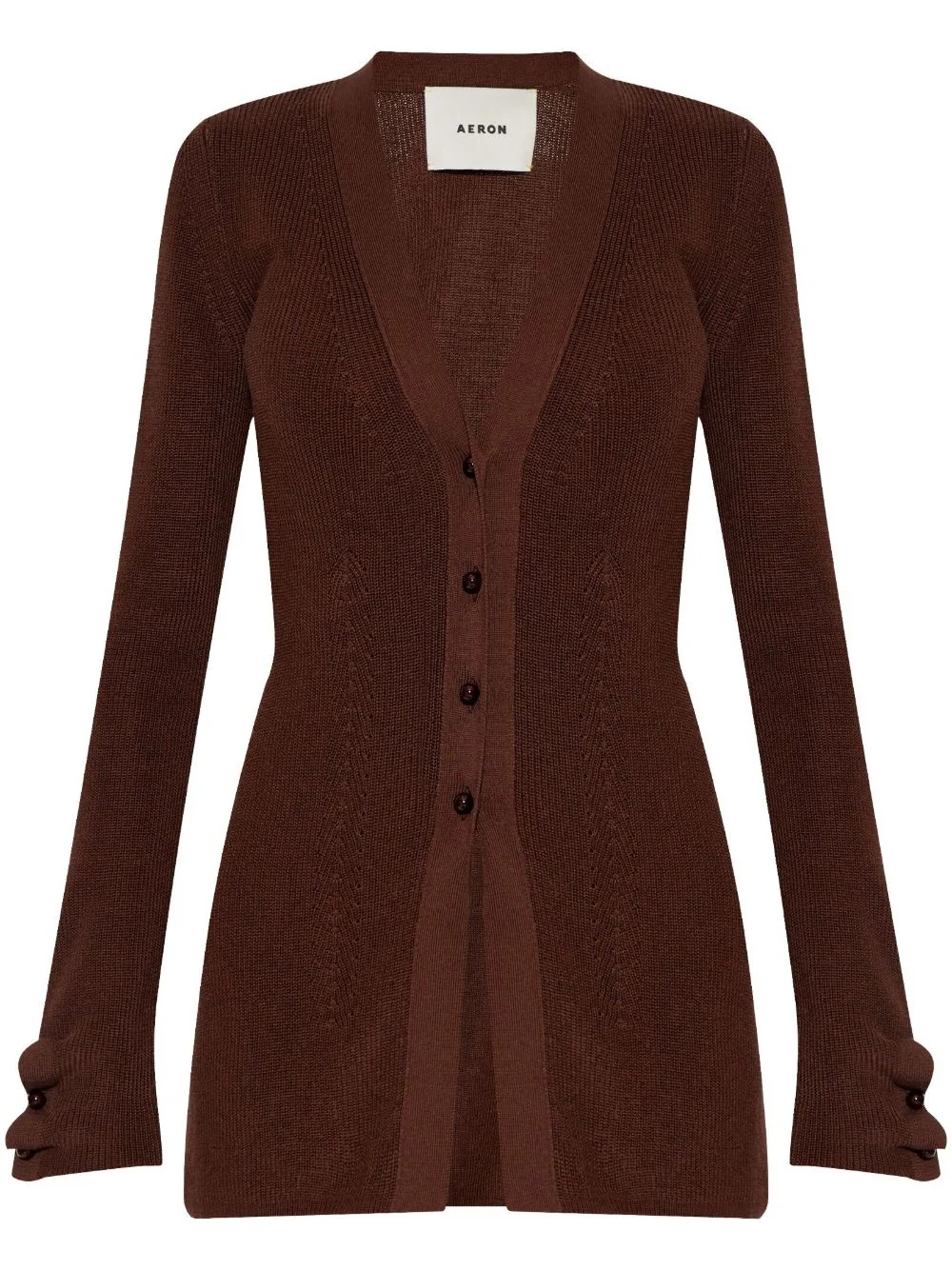 Baxter maxi cardigan Highlights - Chocolate brown - Organic cotton - Knitted construction - V-neck - Front button fastening - Long sleeves - Bead detailing at the cuffs - Straight hem - Long length Imported Composition Organic Cotton 100%