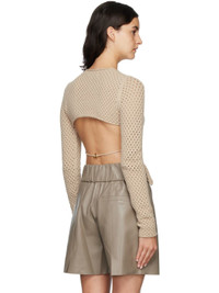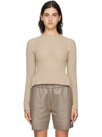 Knit stretch Ecovero™ viscose and polyester-blend sweater. · Rolled edge at crewneck, cuffs, and hem · Cutout at back · Hand-crocheted strap at back · Logo plaque at back Supplier color: Sand 70% ecovero viscose, 30% stretch polyester. Made in Serbia 222343F096000