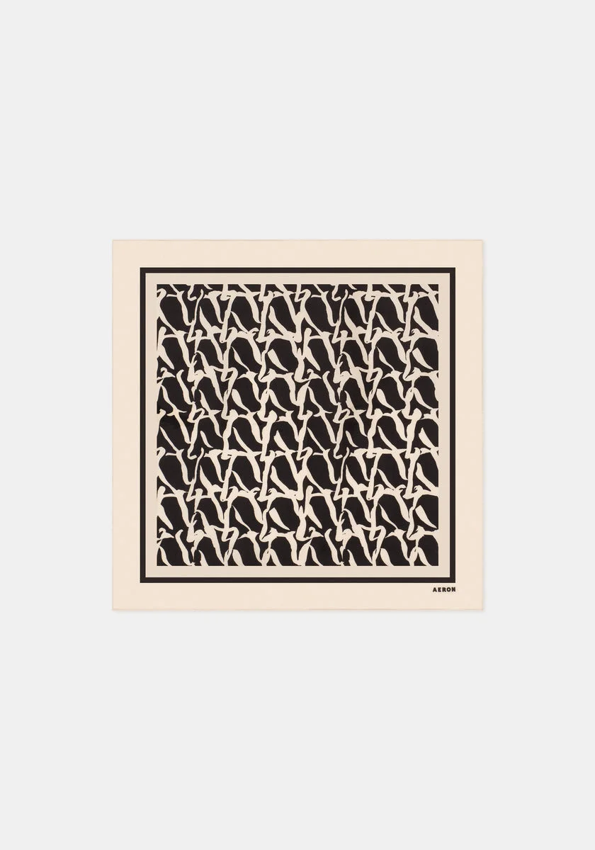 Our BENNET scarf is part of the AERON essentials family of versatile everyday pieces, designed for ease, comfort and practicality. Made of pure silk, it has a square shape and an abstract print of handwritten A-monograms contoured with a minimalist, geometric pattern along the edges. Size and Fit 55 cm x 55 cm Fabric and Care 100% Silk Do not wash, Do not bleach, Do not tumble dry, Iron low temperature, Suitable for dry cleaning, Suitable for professional wet cleaning