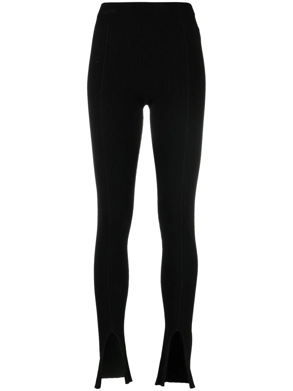 rib-knit slit-detail trousers Crafted from an FSC viscose blend, these AERON skinny trousers are elevated with rib-knit detailing and a front slit at the hem. Highlights - Black - Fsc viscose blend - Skinny cut - Ribbed knit - Elasticated waistband - Front slit at the hem Made in Italy Composition FSC Viscose 70%, Polyester 30% SIZE & FIT Model measurements Height 5 ft 10 in(1.78 m) Bust/Chest 31.49 in(80 cm) Hips 35.43 in(90 cm) Waist 24.4 in(62 cm) FittingInformation This piece fits true to size. We recommend you get your regular size Cut for a close fit Made with a mid-weight stretch fabric Washing instructions Machine Wash