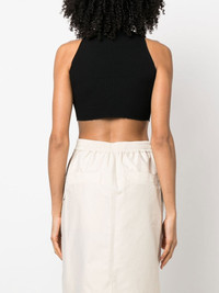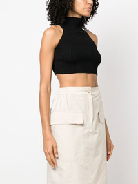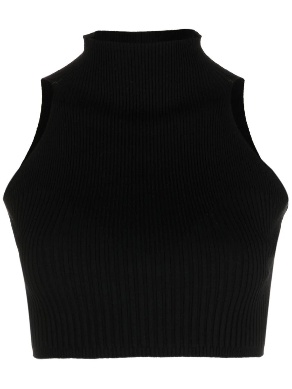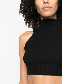 cropped high-neck top AERON's creations are rooted in minimalism. Case in point, this ribbed-knit top defined by clean lines and lack of decoration. Highlights - Black - Ribbed knit - High neck - Sleeveless - Cropped Imported Composition FSC Viscose 72%, Polyester 28% SIZE & FIT Model measurements Height 5 ft 10 in(1.78 m) Bust/Chest 33.07 in(84 cm) Hips 36.61 in(93 cm) Waist 24.8 in(63 cm) FittingInformation This piece fits true to size. We recommend you get your regular size Cut for a close fit Made with a mid-weight fabric Washing instructions Dry Clean Only