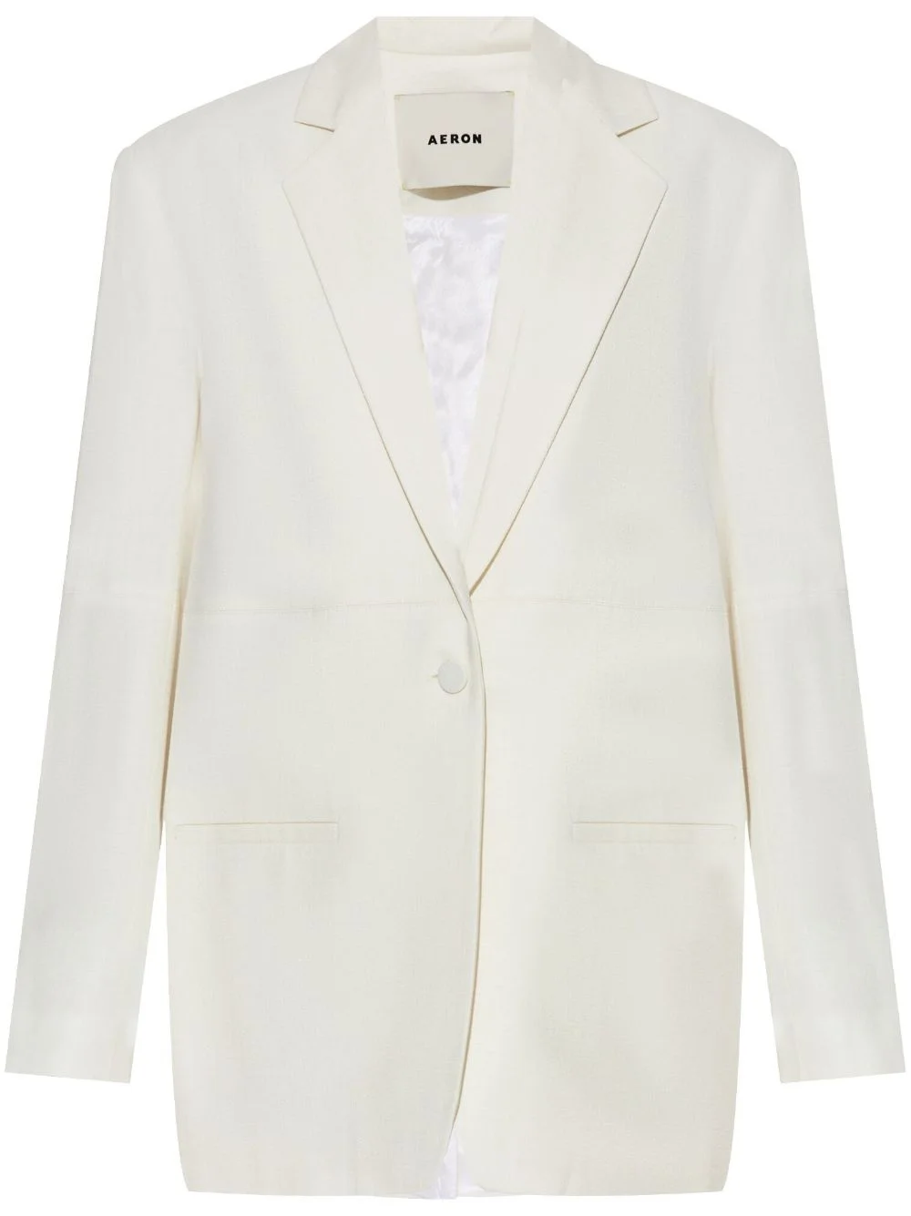Mercedes suiting blazer Highlights - White - Ecovero™ viscose - Peak lapels - Front button fastening - Long sleeves - Buttoned cuffs - Two side flap pockets - Straight hem Imported Composition Viscose 100% SIZE & FIT FittingInformation Designed to be unstructured, offering a loose fit throughout The internal shoulder pads offer a structured shape Made from a midweight fabric
