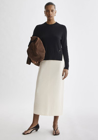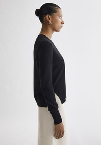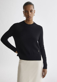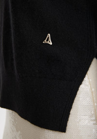Our BLISS sweater is a refined essential crafted from a luxurious cashmere and wool blend, offering a soft feel with a clean, minimal silhouette. Designed with a classic crew neckline and subtly elongated sleeves, it drapes with effortless ease while maintaining a polished, timeless shape. A discreet A-motif at the hem adds a touch of understated distinction. Fabric and Care 70% wool, 30% cashmere Do not wash, Do not bleach, Do not tumble dry, Do not iron, Dry clean