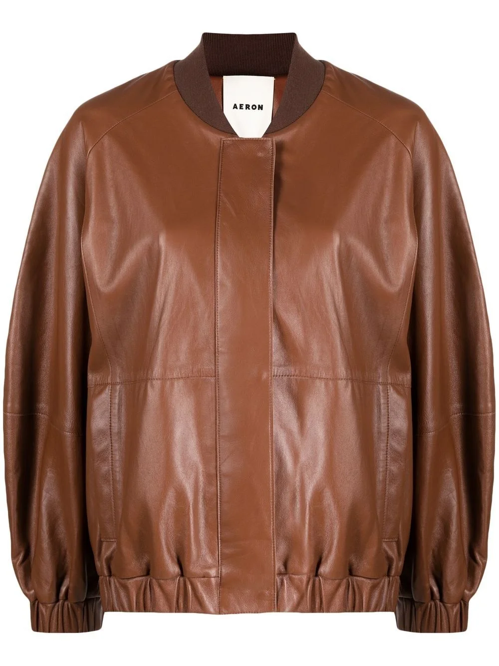 Bloom lambskin bomber jacket AERON reinvents classic silhouettes as this Bloom jacket demonstrates. The bomber-style silhouette is elevated thanks to a rich chocolate-hued lambskin construction. Imported Composition Lambskin 100% SIZE & FIT Model measurements Height 5 ft 8 in(1.73 m) Bust/Chest 33.07 in(84 cm) Hips 35.03 in(89 cm) Waist 24.8 in(63 cm) FittingInformation This piece fits true to size. We recommend you get your regular size Cut for a loose fit Made with a mid-weight fabric Washing instructions Specialist Cleaning