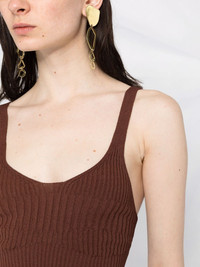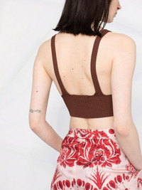Joan rib-knit crop top This Joan rib-knit top from AERON feels contemporary in its cropped silhouette and enriched through the dark chocolate brown hue. Imported Composition Viscose 76%, Nylon 24% SIZE & FIT Model measurements Height 5 ft 10 in(1.77 m) Bust/Chest 31.49 in(80 cm) Hips 34.64 in(88 cm) Waist 24.4 in(62 cm) FittingInformation This piece fits true to size. We recommend you get your regular size Cut for a close fit Made with a mid-weight fabric Washing instructions Dry Clean Only