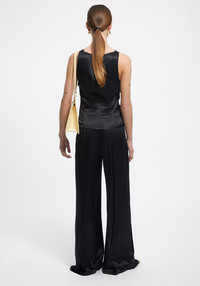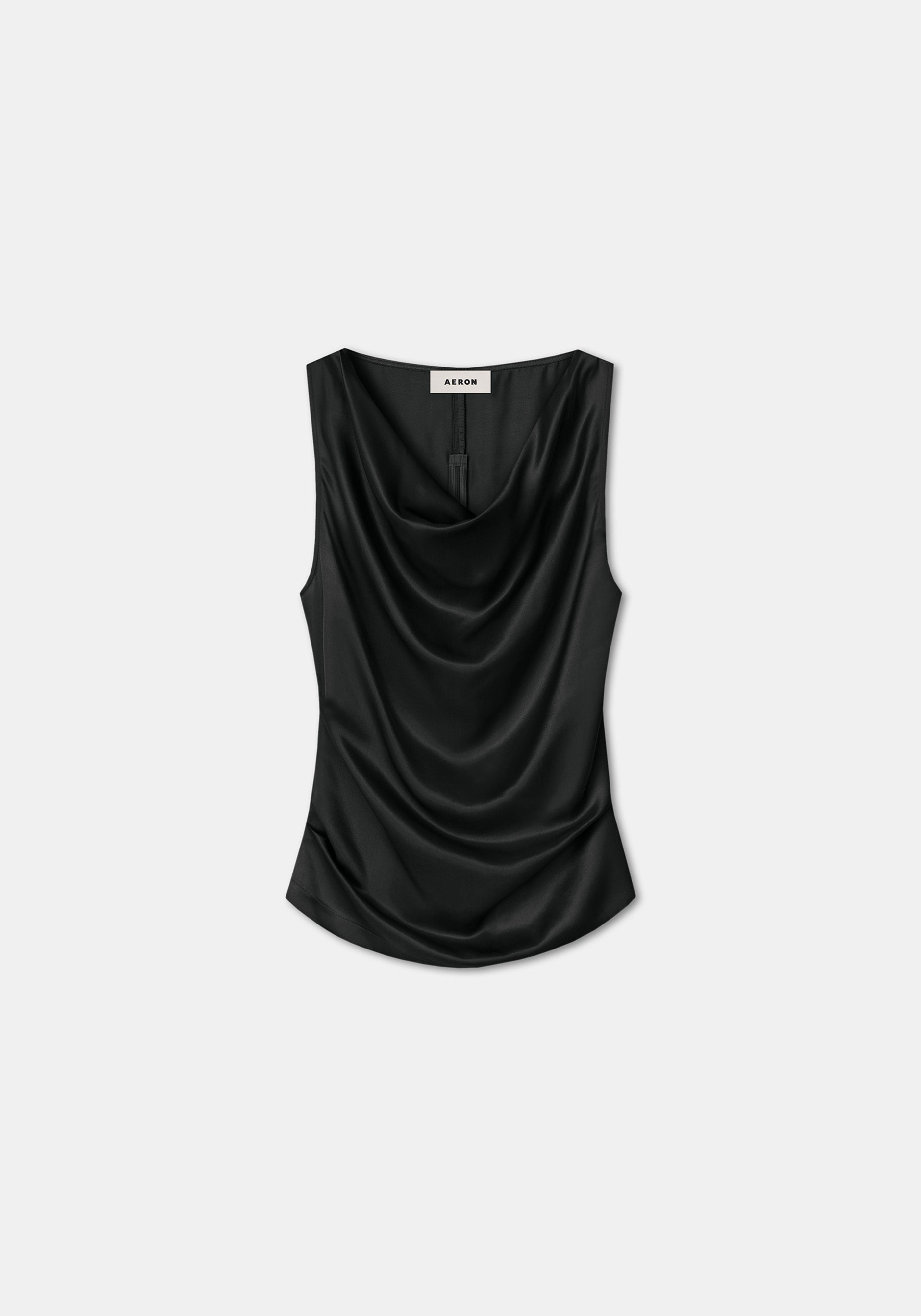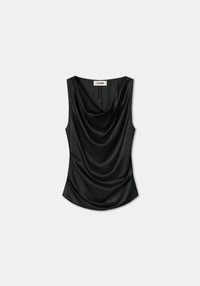 Our CAMILLE satin sleeveless top is made of a sustainable FSC-certified viscose and silk blend. This piece has a slightly waisted silhouette and a cowl neck that falls effortlessly into a draped silhouette. Size and Fit Fits true to size, take your normal size. The model is 180 cm and wears a size 36. Fabric and Care 30% Silk 70% FSC Viscose Hand wash at 30°C, Do not bleach, Do not tumble dry, Iron medium temperature, Do not wring, Dry in shade, Suitable for dry cleaning