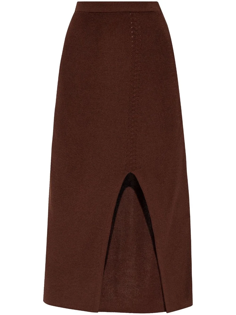 Delos knitted maxi skirt Highlights - Chocolate brown - Organic cotton - Knitted construction - Side slit - Straight hem - Maxi Imported Composition Organic Cotton 100%