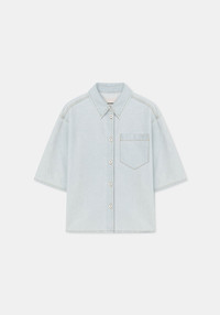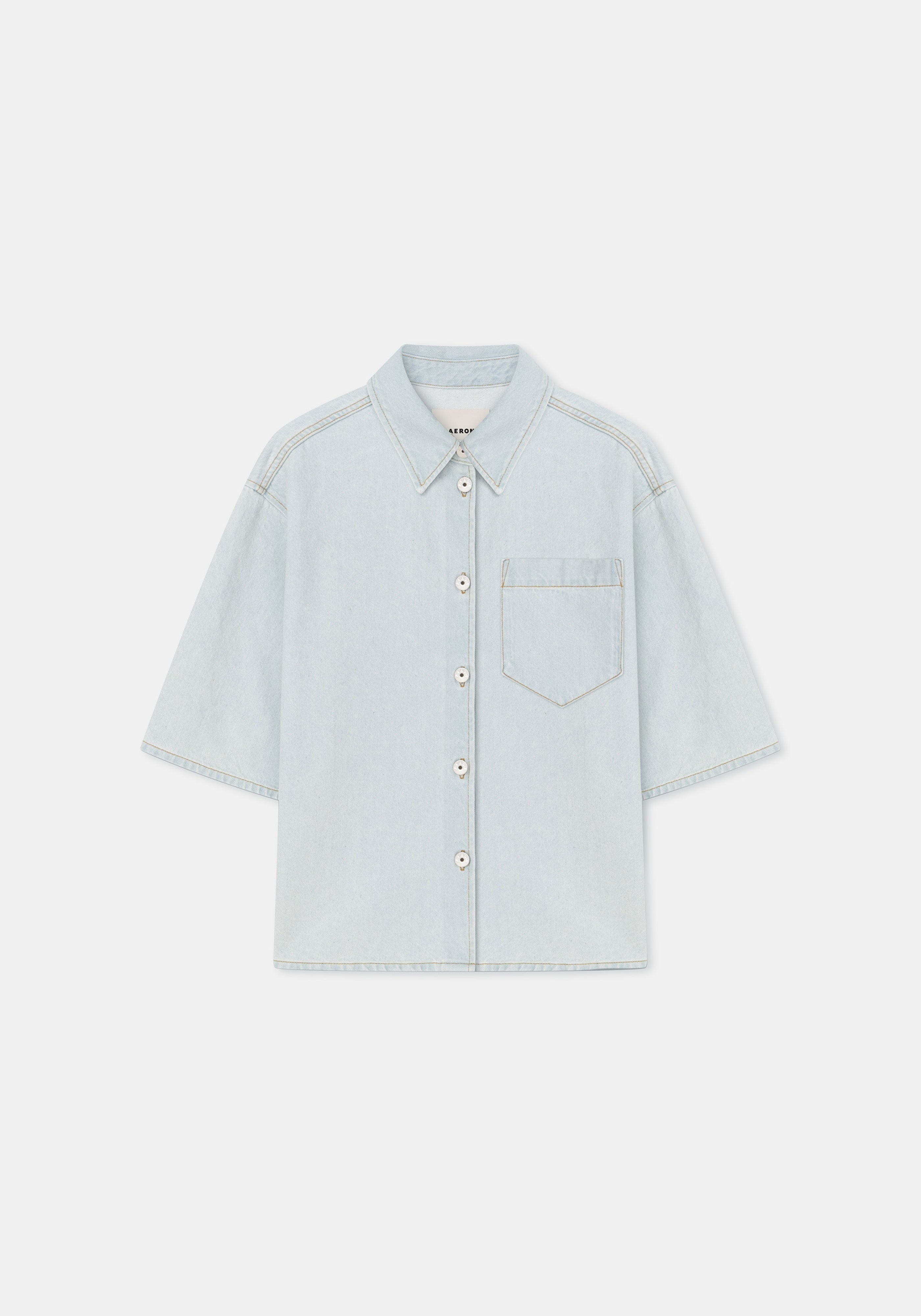 Our ABBOTT light washed short-sleeved denim shirt is made of pure cotton. This piece has an oversized silhouette an with an enlarged patch pocket, and features a mimosa printed logo label at the back. Wear with the matching MONTGOMERY jeans for a complete look. Size and Fit Designed for a loose fit, in case you do not prefer an oversized look take one size smaller than usual. The model is 180 cm and wears a size 36. Fabric and Care 100% Cotton Hand wash at 30°C, Do not bleach, Do not tumble dry, Iron medium temperature, Suitable for dry cleaning, Suitable for professional wet cleaning