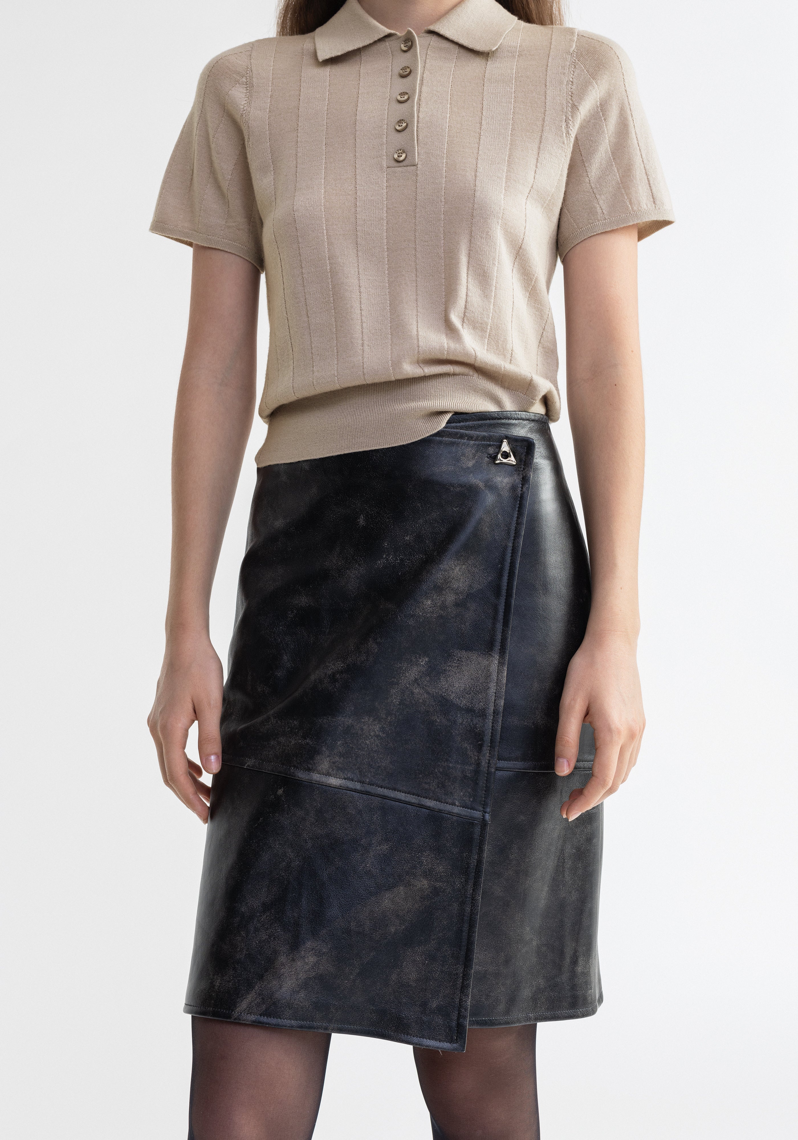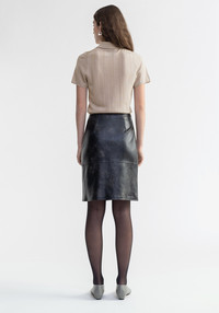 Our DOJA midi skirt is tailored of super soft lamb leather that comes from traceable sources. This piece is made with a washed effect that creates a vintage look. It is designed to a wrap silhouette with an asymmetrical hemline and an A-button closure. Size and Fit Fits true to size, take your normal size. The model is 180 cm and wears a size 36. Fabric and Care 100% Lambskin Leather Do not wash, Do not bleach, Do not tumble dry, Do not iron, Do not dryclean, Consult with leather specialist