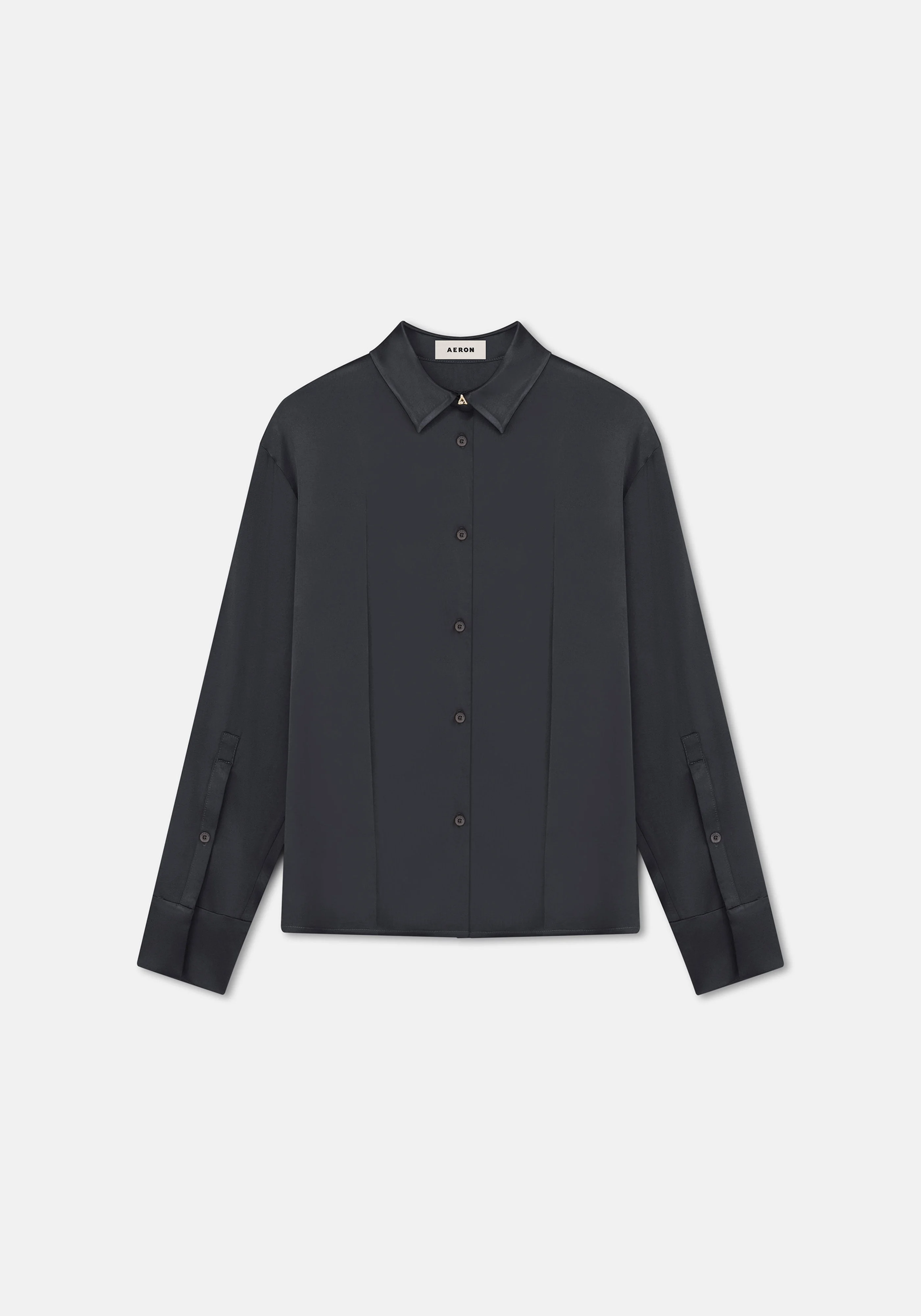 Our DYLAN satin shirt is crafted from a sustainable FSC-certified viscose blend, offering a luxurious sheen with a soft, fluid drape. Designed with a relaxed silhouette, it features a sharp pointed collar, tonal buttons, and elongated cuffs. Size and Fit Fits true to size, take your normal size. The model is 173 cm and wears a size 36. Fabric and Care 44% FSC Viscose 52% Rayon 4% Spandex Hand wash at 30°C, Do not bleach, Do not tumble dry, Iron low temperature, Do not wring, Dry flat, Suitable for dry cleaning, Suitable for professional wet cleaning