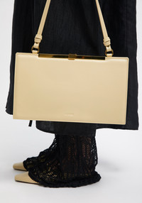 Our EDEN bag is made of pure calf leather. This piece has a classic and sleek rectangular shape and double shoulder straps. It features a small debossed logo on the front and a gold metal closure. Fabric and Care 100% Leather Do not wash, Do not bleach, Do not tumble dry, Do not iron, Do not dryclean, Consult with leather specialist
